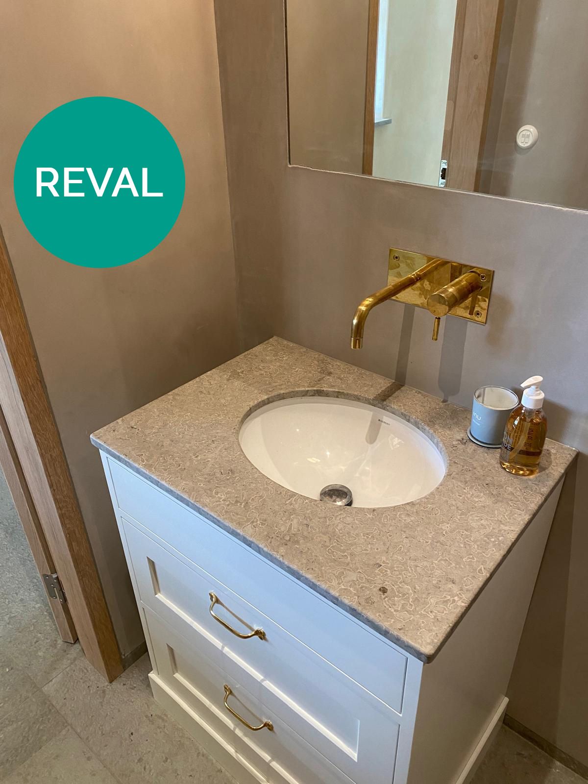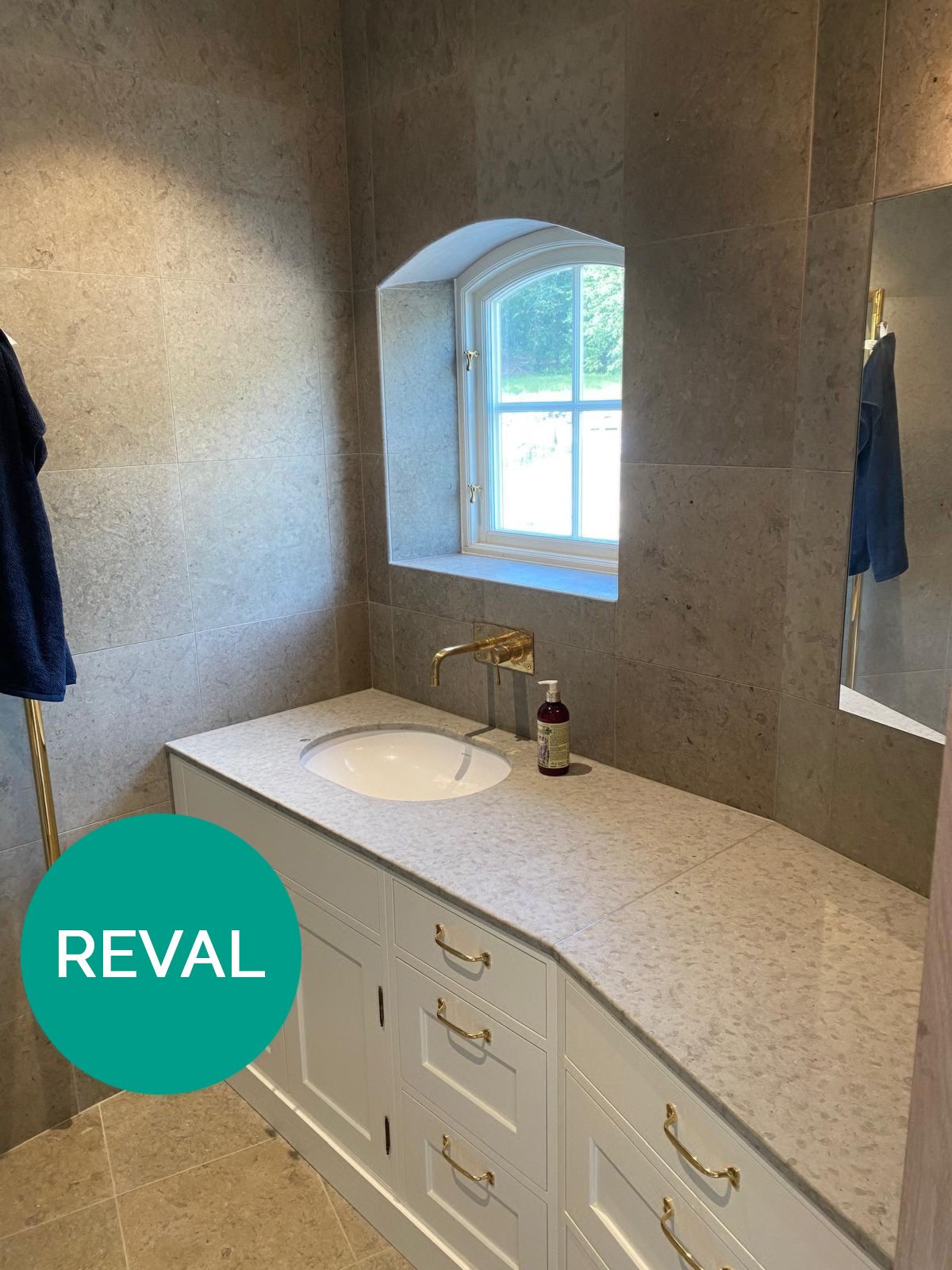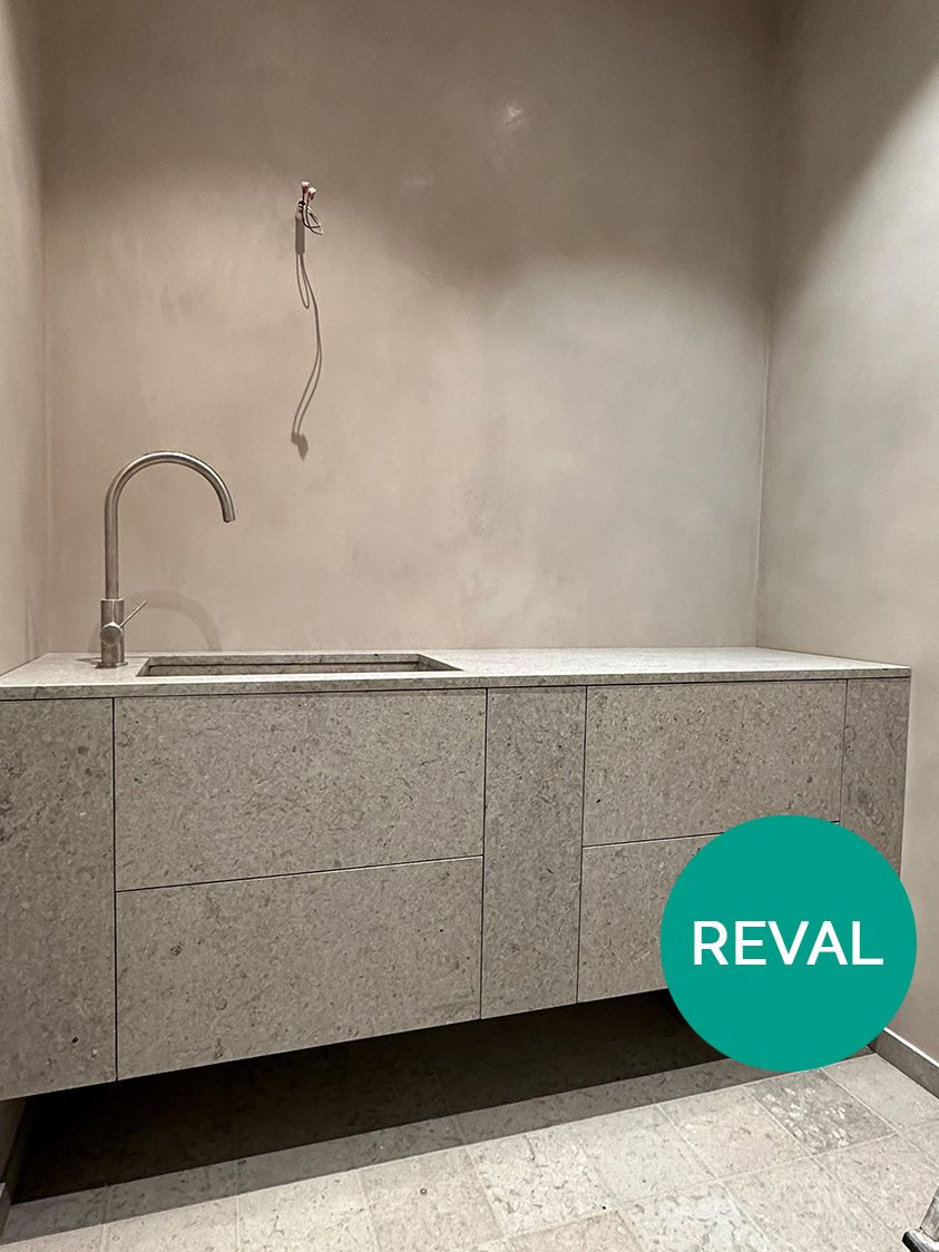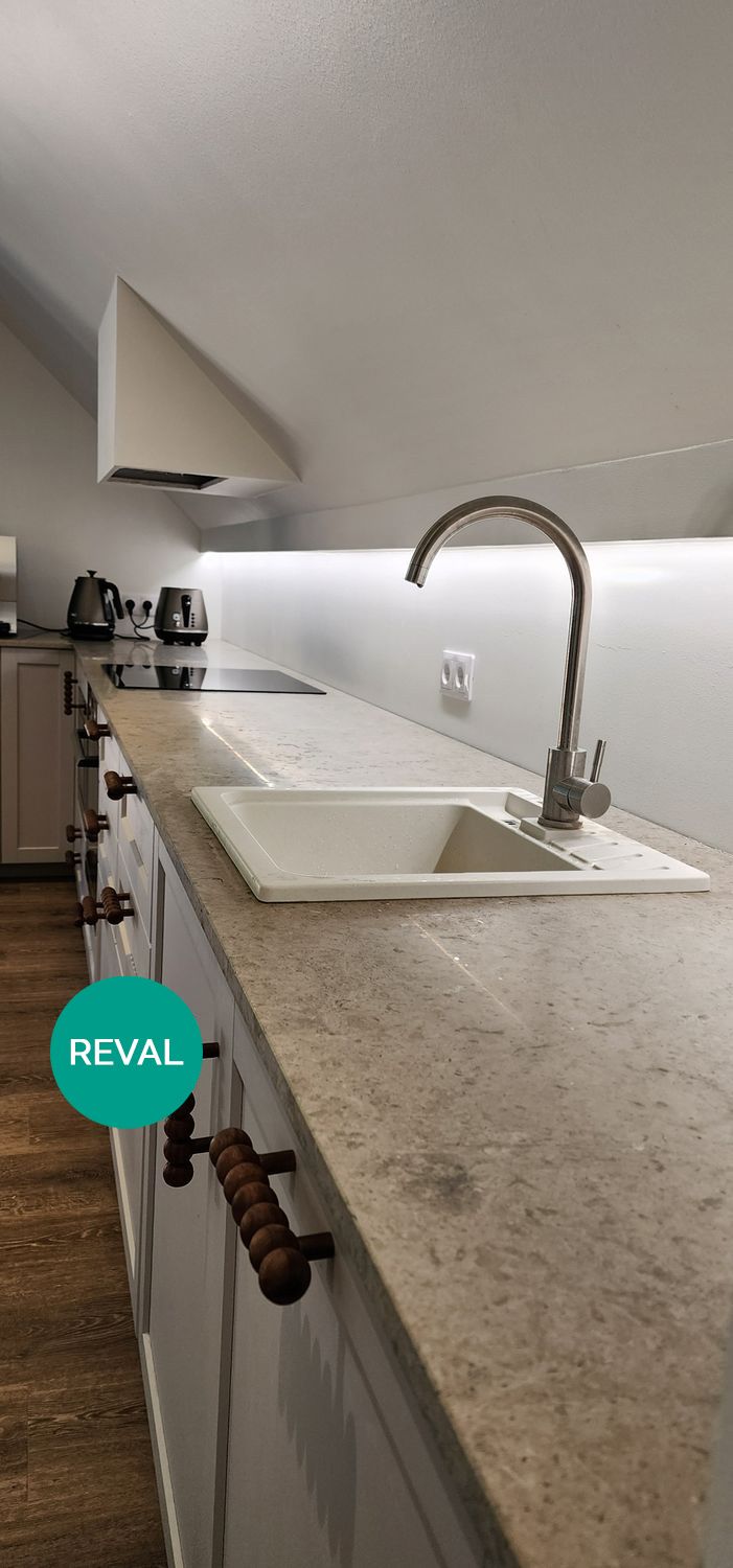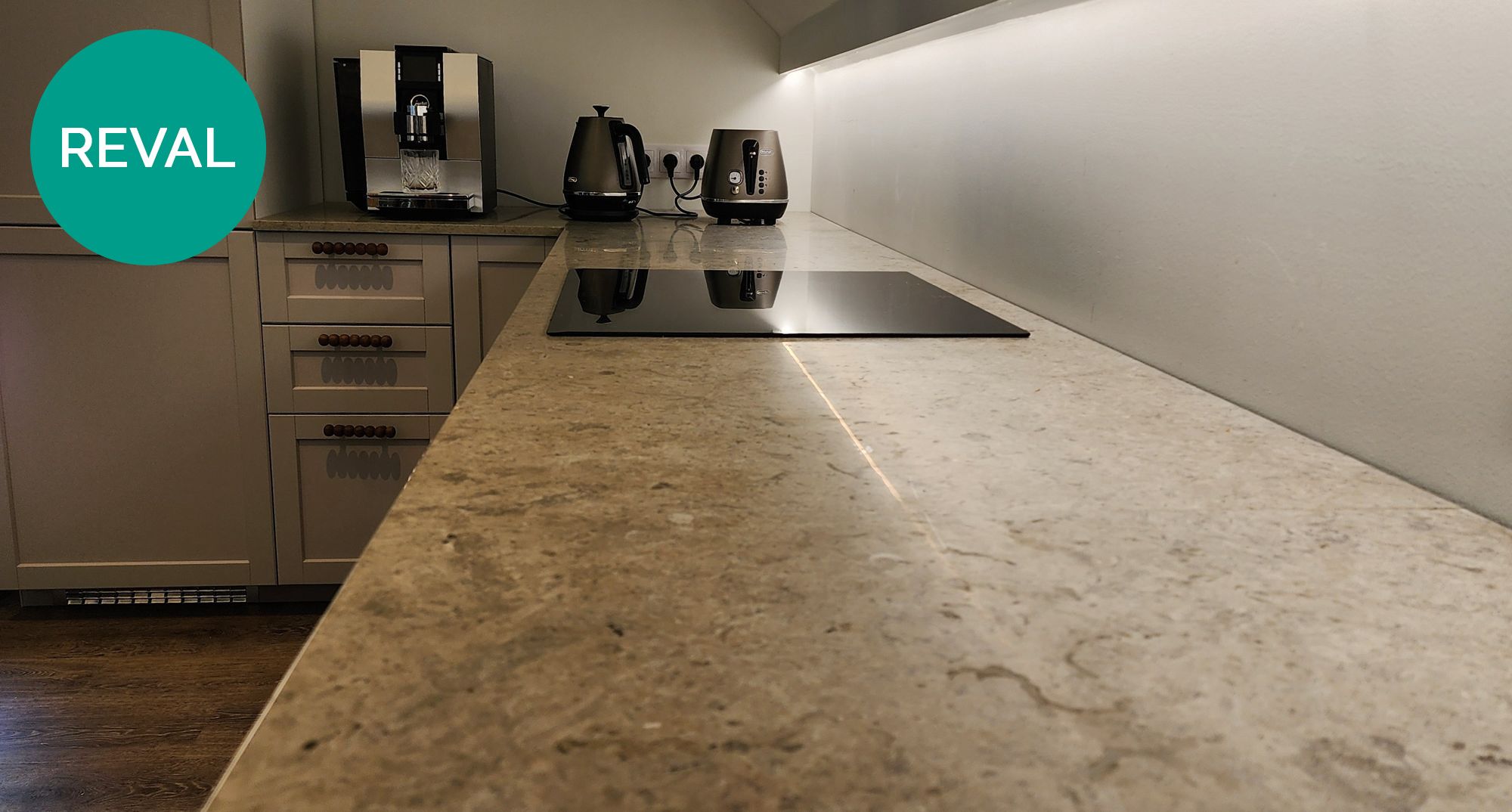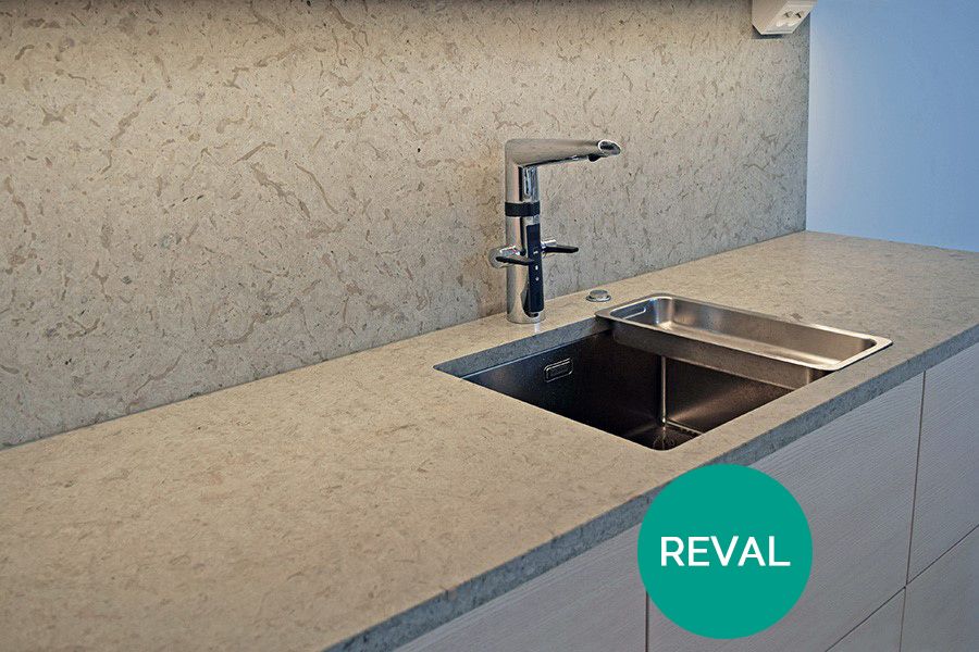You have two options for holes for sinks: a top-mounted sink (no need to process the edges of the hole as the sink will cover them) and an under-glued sink (the edges of the hole are honed and the top edge has a small bevel). In the case of Orgita dolomite, it is possible to cut larger holes (e.g. for sinks and stovetops) to the countertop if the thickness is 3 cm.