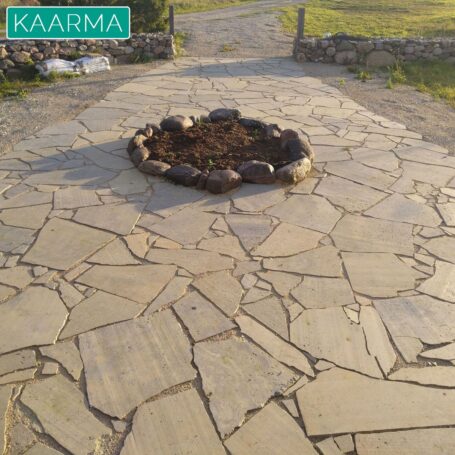 Irregular stone slabs are an excellent choice for garden design, offering natural, different-looking and durable solutions that will last years. The slabs made of Estonian dolomite stones Kaarma, Orgita and Selgase have been produced in our factory on the island of Saaremaa. Every slab is unique, having distinctive natural characteristics and textures that will add character and rurality to your outdoor areas.